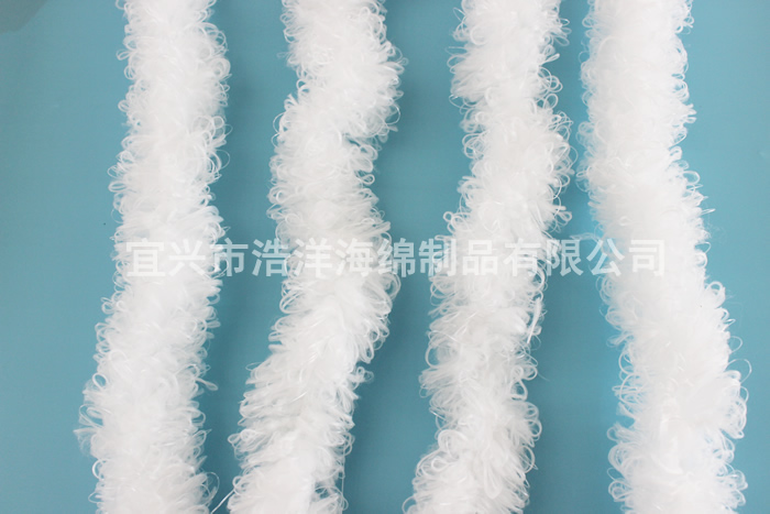 该生物绳是在一种浸没式悬挂型生物载体填料。在生物绳的立体空间内可以大量固定微生物,形成各微生物共存的适宜环境,通过简单处理就可以实现好的处理结果;在生物绳的表面,通过好氧性微生物的增殖来减少氨氮,生物绳通过厌氧性微生物的增殖可以进行生物脱氮;生物绳为绳索状,所以在设置时形状可以自由选择进行变化;通过生物绳在废水中的摇动,不但可以摄取水中的溶解氧,而且可以增加与水的接触效率;在单位生物绳上可以附着大量微生物,因此,在规模较小的反应槽中也可以使用。
